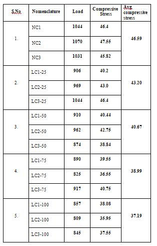Influence of be them cherla stone aggregate on compressive strength.