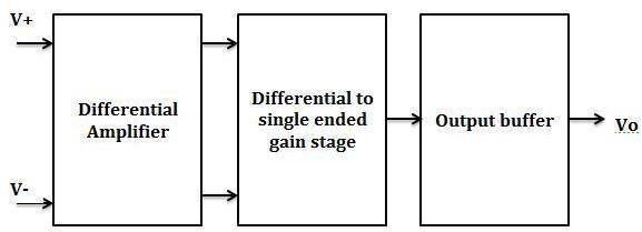 Fig.1 shows essential square graph of an operation amp. It comprises of fundamentally three phases. As displayed in figure 1, the information phase of the operationampcomprisesofadifferentialenhancerandit gives the differential to single finished transformation. Regularly, a the greater part of the piece of the general additionisgivenbythedifferentialinformationstageand thesubsequentstageisordinarilyaninverterornormal sourceamplifier[2].