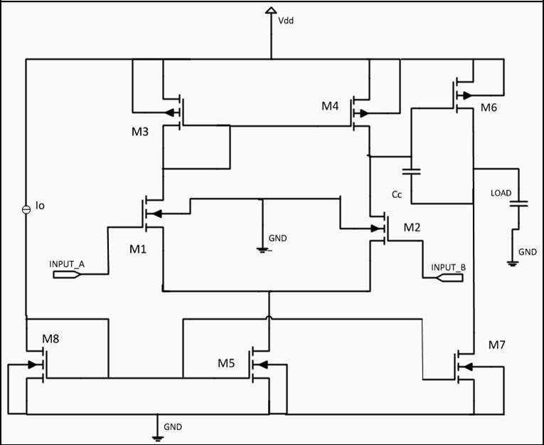 As displayed in fig.2, it is two phase unbuffered door drivenfunctionaltransconductancespeakerwhereinfois appliedfromthetraditionalentrywayterminalofNMOS semiconductors M1 and M2. Alongside M1 and M2, M3 and M4 going about as current mirror load, shapes first phaseofthefunctionalintensifier.M6andM7addressthe subsequentincreasephaseofspeaker.M5andM8involve biasing circuit and Cc addresses the remunerating capacitance.Thistwophaseoperationamp,OTAdisplayed in fig. 2 is generally utilized in view of its design and strength.