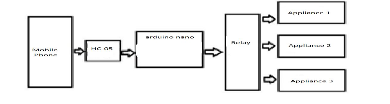 • ThecontrollerinthissystemisArduinowhichcontrolsalltheappliances.BluetoothdevicesandtheRelayModule are connectedtotheArduinoNANO[4].TheRelay boardcommandfortheswitchingon/offtheappliancesisprocessedby ArduinoNANO.