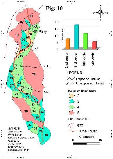 Neo tectonicis a problem in the Chel River basin. Because, neo tectonic deformation causes landslide and gullyerosion,which makesanobstacleinthe plantation of tea and growth of the tourism industry. The tea is cultivatedherebothinthemountainsurfaceandlowfun area. But, the neo tectonic activities causing gully erosion accelerate soil erosion, which hampers the tea plantation mainly in mountain terrain. However, the LavaRoadstretchesthroughthecentralaxisofthisbasin in a north south direction. The landslide along this road atalowerattitudinalareahamperstheflowoftouristsin this area. Alternatively, neo tectonics reshape the sub basins, which cause flood and resultant hampering of crop cultivation in the lower basin area. So, the Chel basin needs to the identification of the variation of tectonic impact on its different parts for the remedial measureoftheaforesaidproblems.