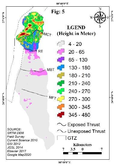 study area. Approximately 10 km south of Matialli Fault the Chalsa scarp (Mohapatra, S. R. et al. 2012) is the regional identification of MBT (Srivastava, V., 2017) and attribute to the MFT (Nakata, T., 1989). To the southern edge of Garubathan recess, the MFT/HFT locally is recognized as Baradighi Fault (Mohapatra, S. R. et al., 2012)