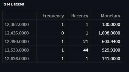 Totaldataisloaded,andtotalpricesaredeterminedinsuch a way that Quantity is multiplied by price for monetary calculations in RFM analysis. After that, invoice dates for frequency areseparated andCustomerIDs forrecency are extracted from the datasets, and other columns such as frequency,recency,andmonetaryvaluearecreated.