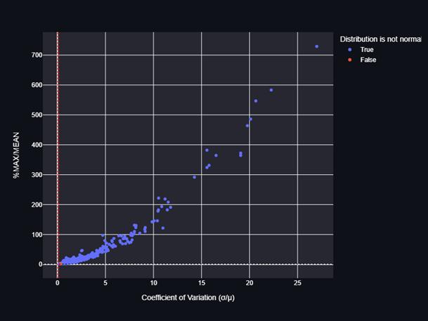 Demand Linearity, also known as Process Linearity, is a measure of the volatility or dispersion of a time series around the average, such as client orders. The standard deviation to mean ratio is known as the coefficient of variation (CV). Even when the means are different, CV is useful for assessing the degree of variance across distinct timeseries.Thebiggertherelativevarianceordispersion, thehighertheCv.