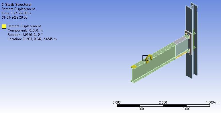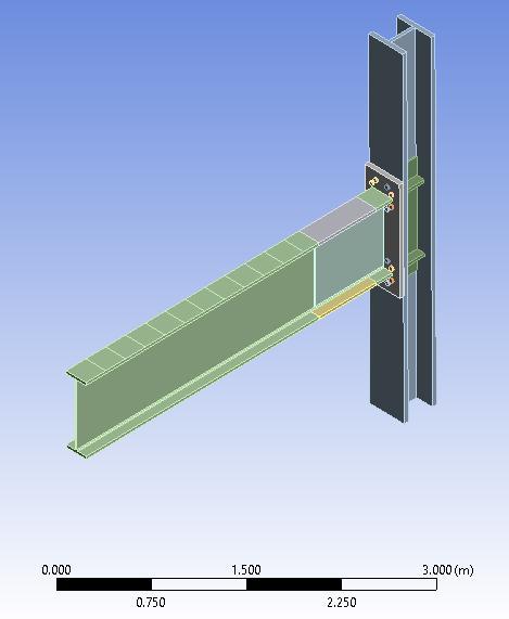 ANSYS workbench is a software which is used for doing analysisofstructural,thermal,andelectromagnetic.ANSYS structural analysis software helps to solve structural engineeringproblemsandmakeresultfaster.Validationis doneonthebasisofthejournal AnUnstiffenedEight Bolt Extended End Plate Moment Connection for Special and Intermediate Moment Frames, Journal of Structural Engineering, Volume 145 Issue 7 published by Machel L. Morrison,DougQ.Schweizer,ShahriarQuayyumandTasnim Hassan(2021).[1]