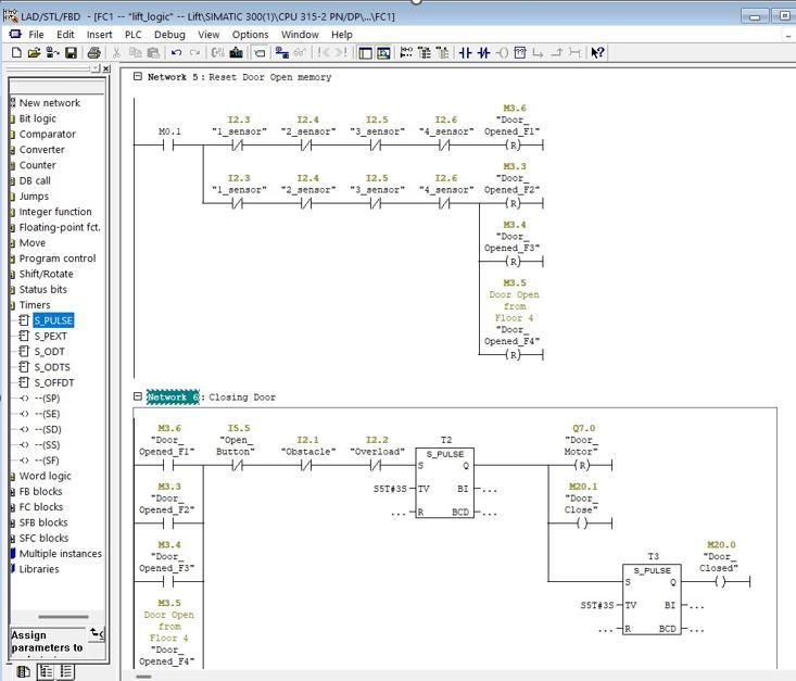 Simulation ran successfully. Logic inputs and outputs for elevatorforwardandreversemotoring,dooropeningand closing motor operation, and other sensors on each floor have been added, and the programme is evaluated and simulated using Graphic Interface. Simulations of logic have been created. The smaller size of wireless solutions makes changes easier and faster. Diagnostics which are centralizedandoverridesarebuiltintoPLCs.