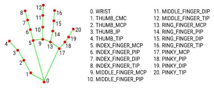 Accomplishesaccurate crucial point clustering of 21 main pointswithonlya3Dtouchcoordinatesthatisdonewithin the identified hand areas and immediately generates the coordinates predictor that is a representation of hand landmarkswithinMediaPipe[15][16].
