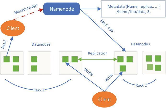 HDFS:ThecoreelementoftheHadoopsoftwaresystemis theHadoopDistributedFileSystem(HDFS).ItistheHadoop filesystem.HDFSissetuptostorealotofdata.Itmakesuse ofwidelydispersed,inexpensivehardware[13].Thisfaulttolerantstoragesystemcanholdhugefilesthatrangeinsize from TB to PB. In HDFS, there are two different kinds of nodes:namenodesanddatanodes.