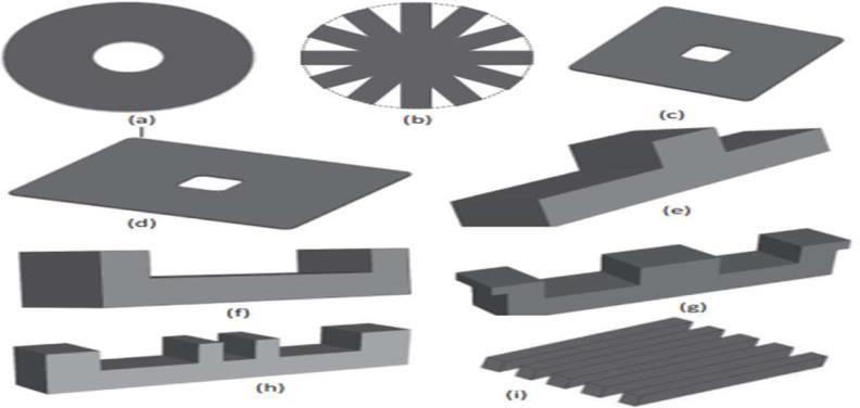 Fig.3. Ferriteshapes(a)Circular(b)circularstriated(c) square (d) rectangular (e) T-core (f) U-core(G)E-core(h) Fig4. Basic diagram of dynamic wireless electric vehicle chargingsystem.