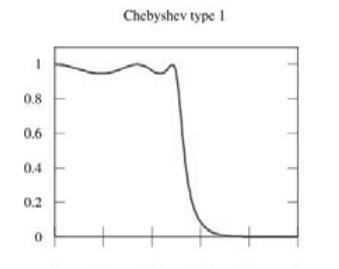 2.2.2. Chebyshev I: Chebyshev filters are mostly used to separate one band frequencies from another. Chebyshev filtertypeIhaveequal rippleinpassbandandmonotonic in stopband but its rolls off very fast but at expense of grater pass band ripple i.e. It has ripples in pass band but itsrollsoffveryfastasshowninfig.2