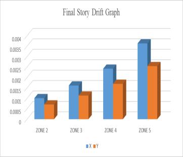 3.Alsofrom bar graph/chartsfor theDisplacement, Story Shear,AutoLateralLoads,MaximumStoryDriftparameter valuesoftheGridslabstructurewecanclearlyseethatthe graph linearly increases as per the zone values. Hence we