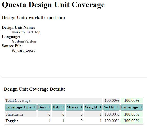 Fig-17showsthecodecoveragedetailsofUARTtestbench