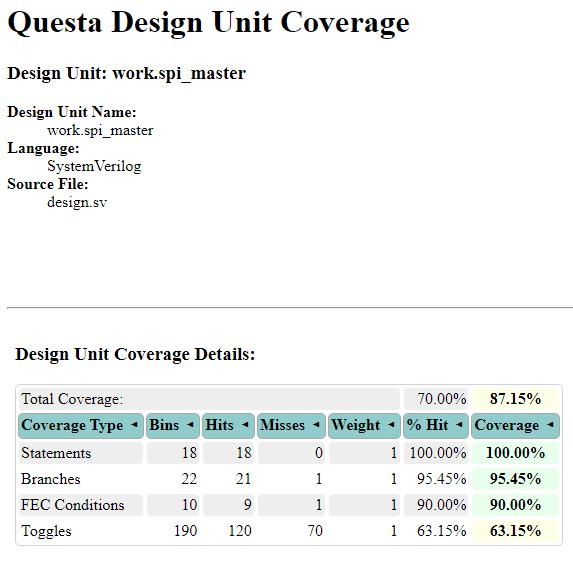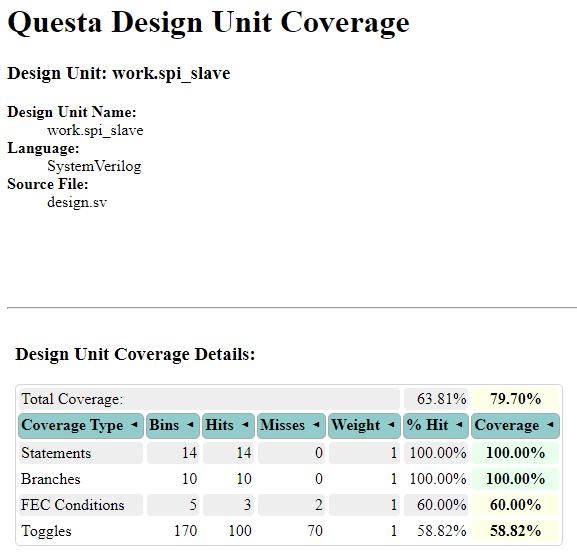 Fig-18showsthecodecoveragedetailsoftheSPItestbench