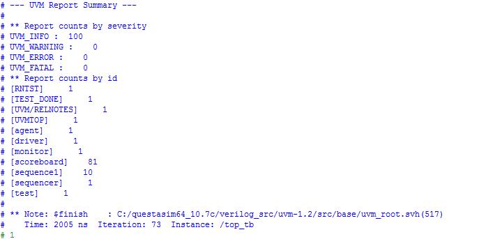 UVMreportsummaryinfig-11givesthedetailsofWARNING, ERROR,FATAL,numberoftestcase,iterationandtimetaken duringtheUVMverification.