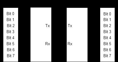 ThetransmittingUARTconvertsparalleldataintoserialdata, once received from the data bus. The receiving UART translatesbacktoparalleldataafterreceivingserialdatabit by bit. No clock synchronization between transmitter (Tx) andreceiver(Rx),thismeanstheyhavetoagreebeforehand toaclockfrequency.Thisisdonebysettingthebaudratefor UART Tx and UART Rx. Transmission of data speed is measured as a baud rate, which is represented in bits per second (bps).UART can works in different baud rates like 1200, 2400, 4800, 9600, and 115200 bps. Tx and Rx must functionatsamebaudrateinthebothUARTs[1][3] Datais sentintheformofpackets.