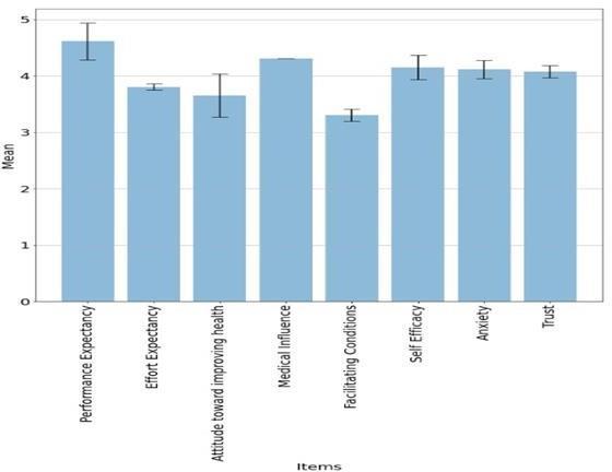 The interpretation of survey results reinforces the positivereception of PregnancyBot, withthe majority of usersreportingagreementwiththesystem’sbenefits,as seeninFigure1.Usersexpressedhighlevelsoftrustand satisfaction with PregnancyBot’s functionality, as evidenced by the mean scores in Figure 2. These results underscore the potential of machine learning (ML) and natural language processing (NLP) technologies to revolutionize the way pregnant women interact with healthcare tools.