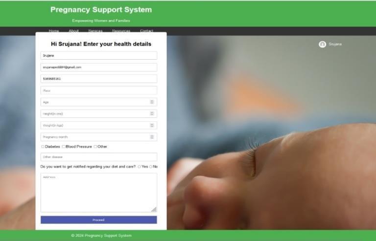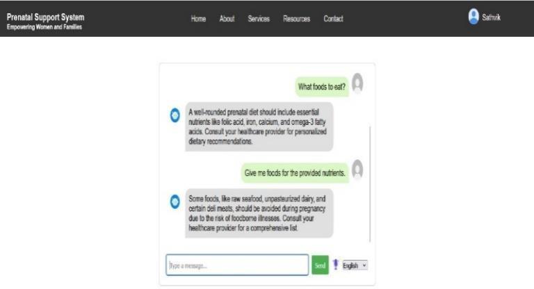 An in-depth analysis of user feedback revealed that the design of the PregnancyBot user interface (UI) played a crucialroleinitsadoptionandeffectiveness.TheUIwas intentionally crafted to be intuitive and user-friendly, ensuring accessibility for users with varying levels of technical expertise. Users reported that data entry, such as filling out forms related to their age, pregnancy month, and health conditions, was easy and non-
