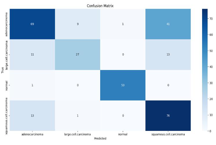 "Extreme Inception." It is based on the assumption that cross-channel correlations and spatial correlations in convolutional neural networks are completely separable. To this purpose, Xception substitutes standard convolutional layers with depthwise separable convolutions, which decompose a typical convolution into a depthwise spatial convolution followed by a pointwise (1×1) convolution. This structure drastically lowers the number of parameters and computational overhead while preservingorevenimprovingthemodel'srepresentational capabilities. This system trains the Xception model to classify slices of lung CT scans into four groups: normal, adenocarcinoma, large cell carcinoma, and squamous cell carcinoma.Xceptionisuniquelysuitedtoidentifythefinegrained textural and structural patterns characteristic of various lung diseases due to its architectural depth and parameterefficiency.Furthermore,themodelisrefinedon a carefully selected dataset using transfer learning techniques, which enables the system to have high diagnosticaccuracywithimprovedgeneralization.[3]