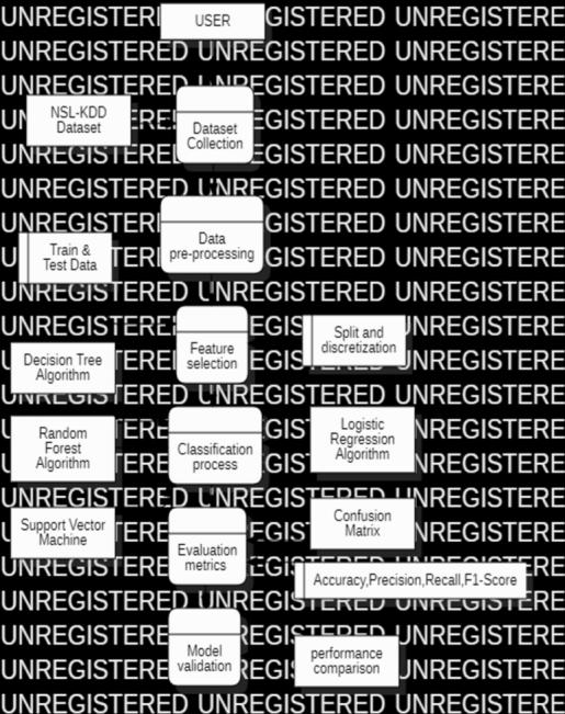 1. Logistic Regression (LR): For binary classification issues,LRisapopularalgorithm.Whenthereislinear separabilityinthedata,itworksespeciallywell.Inthis study,weappliedLR tothe datasettoclassifynormal versus anomalous events. Multiple train-test splits (80:20, 70:30, and 60:40) were used to evaluate the model,andaccuracywasobservedtobearound98%.