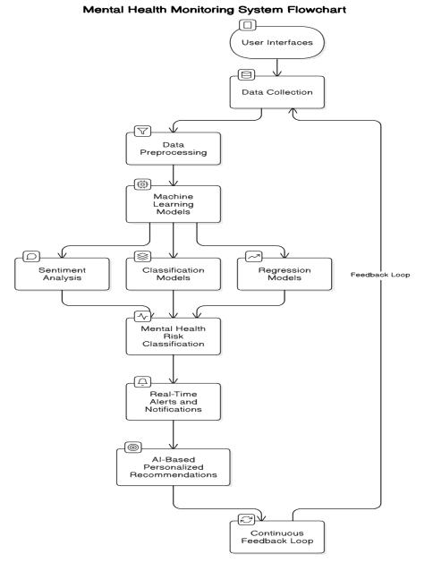 Model Training: The system can train LSTM (Long ShortTerm Memory networks) or even ARIMA (AutoRegressive Integrated Moving Average) as the time-series models in order to predict the potential risks towards the mental healthrisksorfutureemotionalstates.