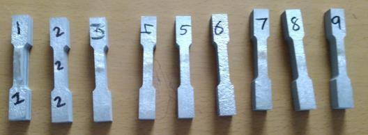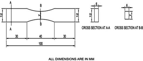 dimensionsofthetensiletestspecimenarepresentedin Fig 4.5 and Tensile test samples are shown in Fig. 4.6. The specimens were subjected to fine polishing to remove the oxide layers at the surface and also to bring toaccuratecross-sectionalarea.