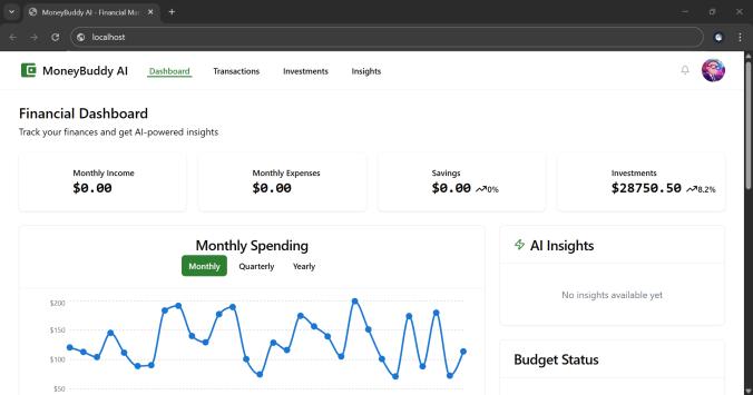 By using modern frontend technologies and adhering to best practices in web development (component reusability, proper state management, and intuitive design), the Moneybuddy AI frontend delivers a smooth and engaging experience. It effectively visualizes complex financial data in an understandable way and allows users to interact with their data (adding entries, adjusting budgets,exploringinsights)inrealtime.