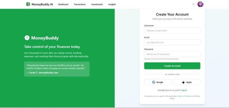 Receipt scanning and digitization is another area identified as underutilized in existing finance apps. Thomas and Singh [3] noted that many platforms fail to leverageOpticalCharacterRecognition(OCR)forreceipts, despite its ability to streamline expense tracking. Moneybuddy AI integrates OCR to automatically extract data from uploaded receipts and update transaction records,directlyaddressingthisgap.AstudybyPateland Roy [4] emphasized the importance of user interface designinfinancialapplications,showingthatintuitiveand visually appealing dashboards significantly improve user engagement and retention. Accordingly, Moneybuddy AI leverages modern UI frameworks (Tailwind CSS and Shadcn/UI) to offer a clean, responsive interface that encourages frequent use. Kumar et al. [5] discussed the importance of real-time synchronization and crossplatform accessibility in personal finance tools. In line with this, Moneybuddy AI is built with a web-first approach using modern JavaScript technologies to ensure high performance, real-time updates, and an easy path to futuremobileorcross-platformsupport.