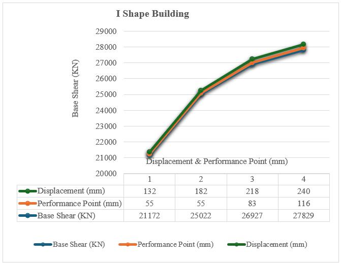 Chart 3: Chart shows the relation of base shear vs displacement&performancepointforIShapeBuilding.