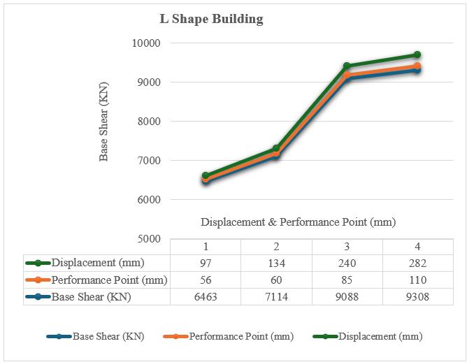 3:Chartshowstherelationofbaseshearvs displacement&performancepointforLShapeBuilding.