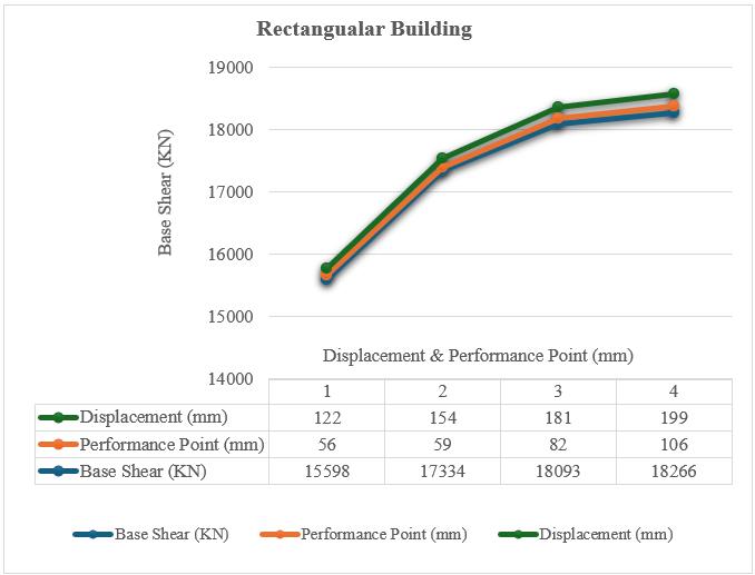 2: Chart shows the relation of base shear vs displacement&performancepointforRectangularBuilding.
