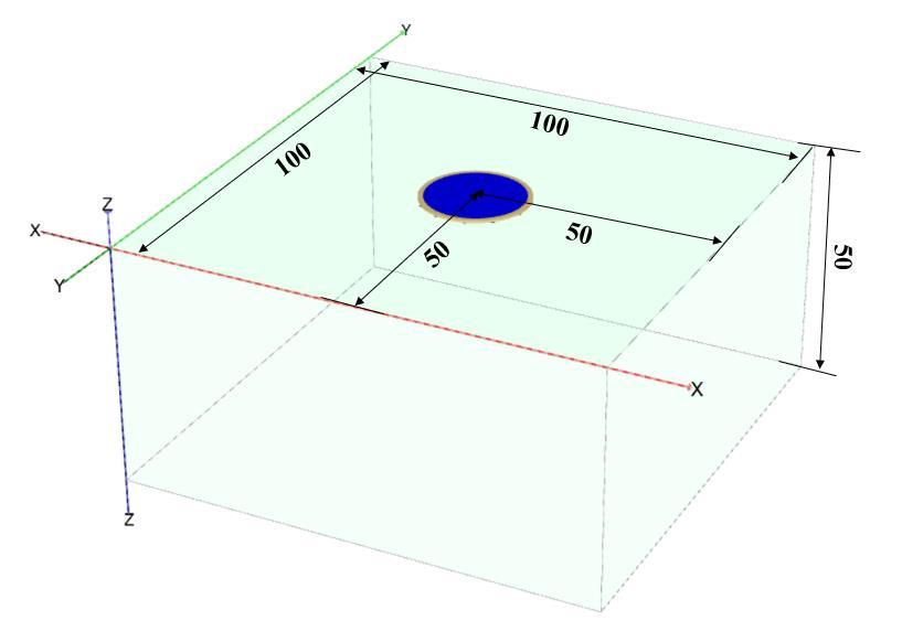 A quarter of the geometry has been modelled due to the symmetryofthemodel.Thedimensionsofthesoilprofile taken–50mx50mx50m.