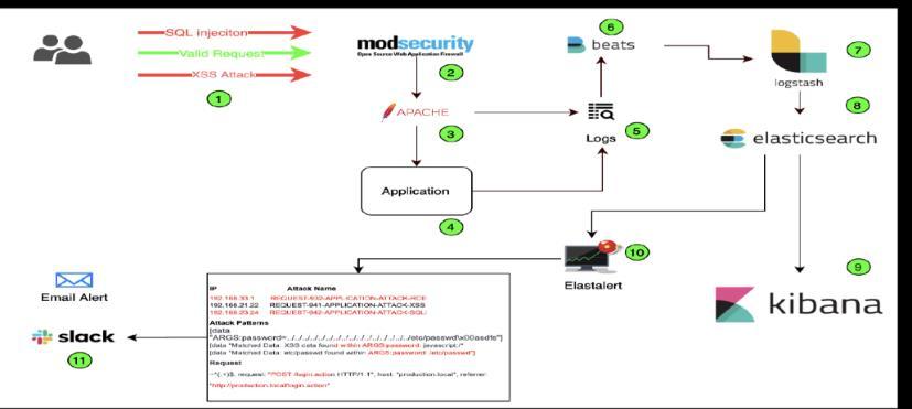 Interestingly, the literature review and comparative analysisidentifiedthatwhileModSecurityprovidesagood WAF solution, it reaches its full potential only when integratedintoalargersecuritymonitoringstacklikeELK. The stack's modular design allows customization,