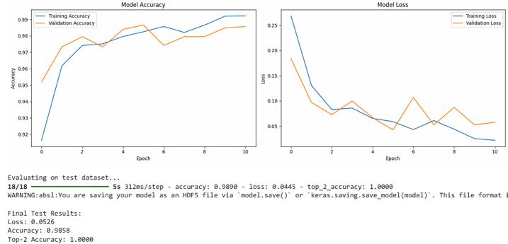 The CNN model performance was assessed using accuracy,precision,recall,andF1score.Accuracymeasures the fraction of correctly classified images, while precision andrecall tell us about the model'sability to identify true positivecases Where,