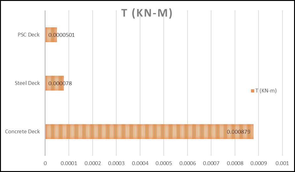 Figure4.7VariationofAbsoluteMaximumTorsional moment(T)inconcretesteelandPSCGirder