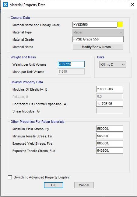 High strength steel of grade Fe-550 is used in modelling whichislightweightandexhibitssuperiortensilestrength, makingitidealforlongerspans.ItoffersHighercostdueto material andmaintenance expenses.PropertiesofSteel of FE-550gradeisasinfigure3.2.