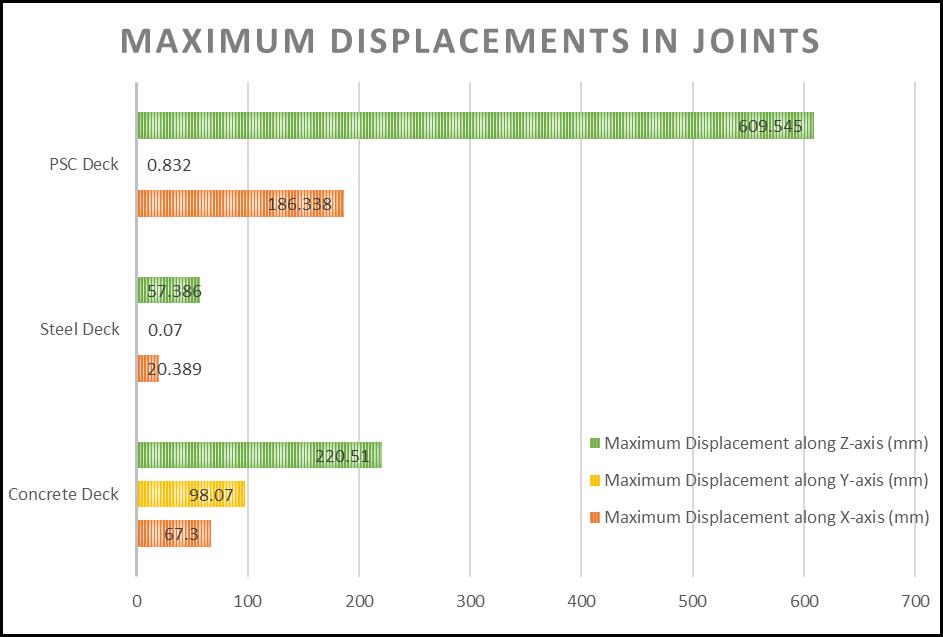 Figure4.3VariationofAbsoluteJointDisplacementinxy andzdirectioninconcretesteelandPSCdeck