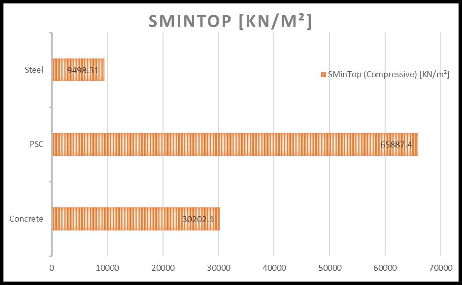 Figure4.11VariationofMinimumPrincipalStressatTop surface(SMinTop)inSteelConcreteandPSCDeck