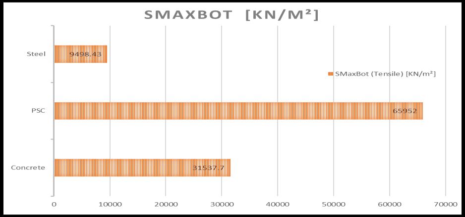 Figure4.13VariationofMaximumPrincipalStressat bottomsurface(SMaxBot)inSteelConcreteandPSCDeck