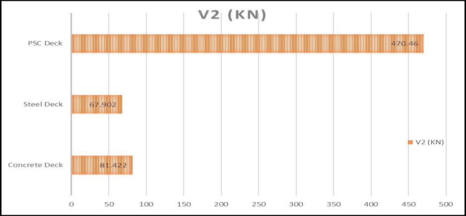 Figure4.5VariationofAbsoluteMaximumshearforcein Y-Direction(V2)inconcretesteelandPSCGirder