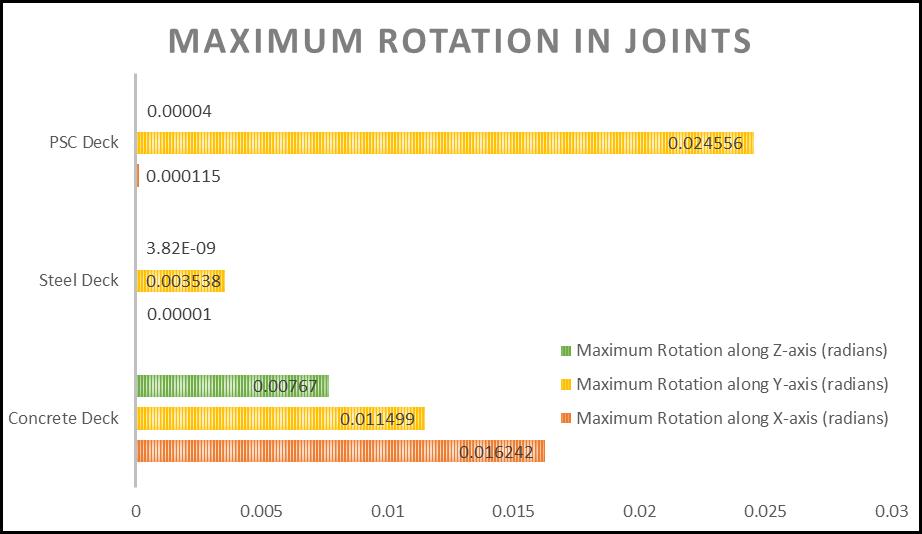 Figure4.4VariationofAbsoluteJointRotationsinx,yand zdirectioninconcretesteelandPSCdeck