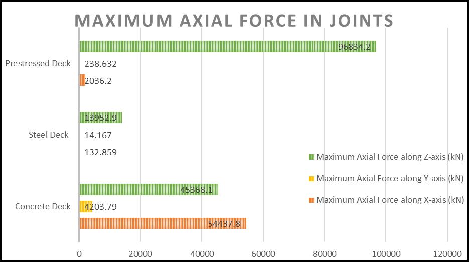 Figure4.1VariationofAbsoluteMaximumAxialForcein inx,yandzdirectioninconcretesteelandPSCdeck