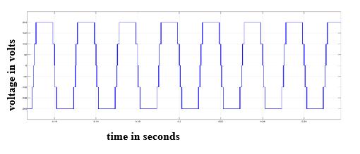 Fig 8 : outputwaveformofPVArrayConnectedboost converterand5-levelinverterSimulinkmodel.