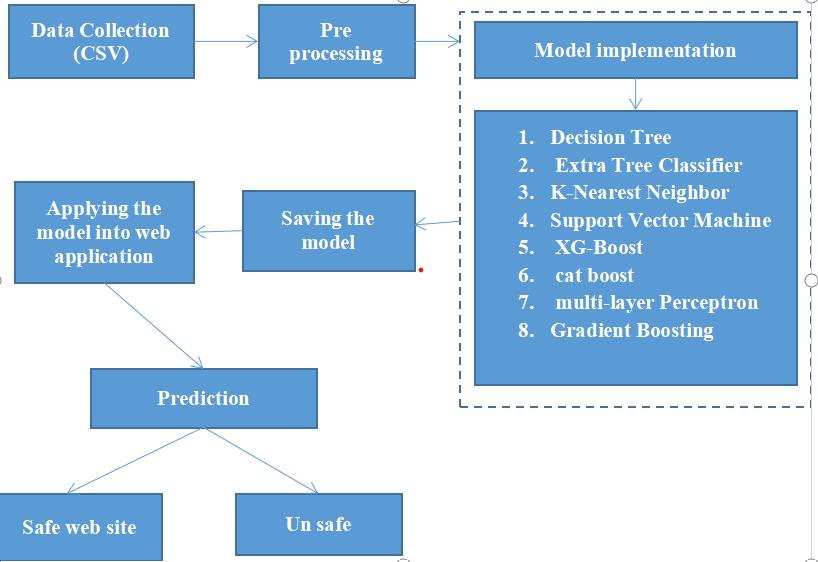 The proposed system for client-side defense against web spoofing attacks is built on the foundation of advanced machine learning algorithms and efficient feature engineering. Our approach consists of several key phases: data acquisition, preprocessing, feature extraction, URL embedding, model training and evaluation, followed by client-sideintegrationthroughawebapplication[16].Each phaseplaysacriticalroleinbuildingarobustandintelligent systemcapableofdetectingavarietyofmaliciousURLsin real-time.