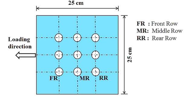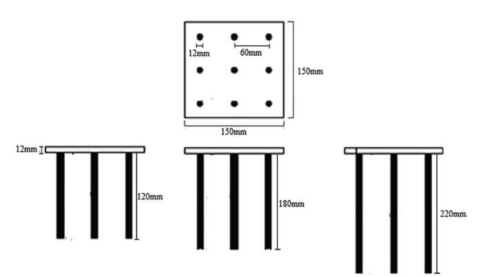 Figure 2: Pileraftmodelofsquareraftofsize200mm width9numbersofpiles