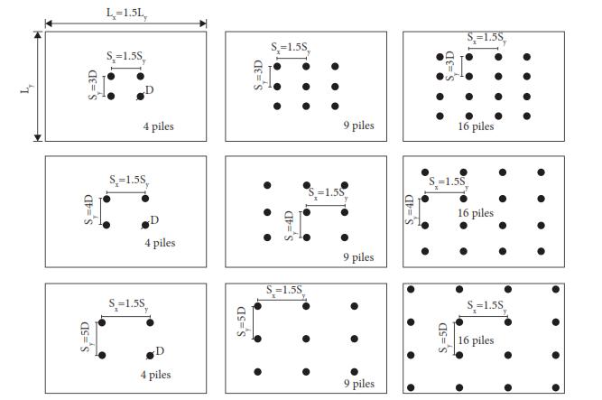 3. Optimal Pile Spacing and Arrangement Enhance Efficiency: Increasingpilespacing(withinan optimal range of 4D–5D) improves lateral load resistance and reduces group interaction effects. Uneven load distribution can occur with higher pile counts, but properspacingmitigatesthis.
