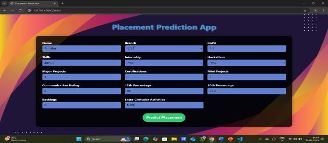 highest accuracy for final prediction. To optimize performance, we conduct hyperparameter tuning for each algorithm to ensure we extract the best possible results. AdaBoost, in particular, is used to combine multiple weak classifiers to create a more robust and accurate model. Gradient Descent is employed as an optimization techniquewithinmodelslikeRandomForestandDecision Trees to minimize prediction errors and improve overall accuracy. By leveraging these advanced machine learning techniques, the system generates personalized feedback for students, helping them identify areas for improvement in technical skills, internships, and other key areas. Additionally, educational institutions can use the insights from our model to better align their training programs with industry requirements, enhancing student employability. For recruiters, our system offers a data-driven approach to shortlist candidates, saving time and resources in the placement process. Ultimately, our system bridges the gap between student capabilities and industrydemands,improvingplacementsuccessratesand enablingmoreinformeddecision-makingforbothstudents andinstitutions.