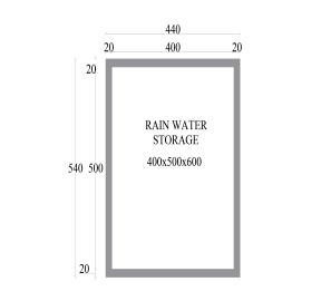 The rainwater storage tank measures 400x500x600 and holds120,000litresofwater,collectedfromtheterrace.This systemhelpssavewaterandreducestheneedforexternal sources.