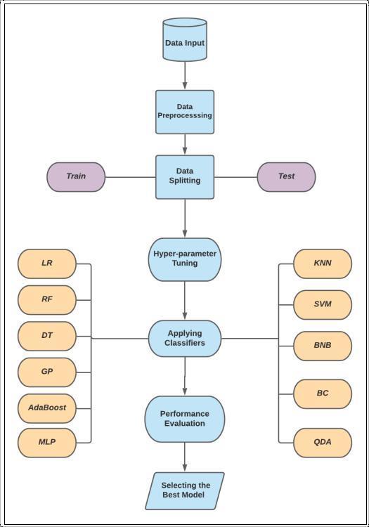 Encoding Categorical Variables : MakingacodeUsing methods like one-hot encoding or label encoding, we transform categorical variables if present in the dataset into numerical representation. Data cleaning included categorical feature encoding and resolving missing values. StandardScaler was used to scale the features. 75% of the data was used for training, while 25%wasusedfortesting.