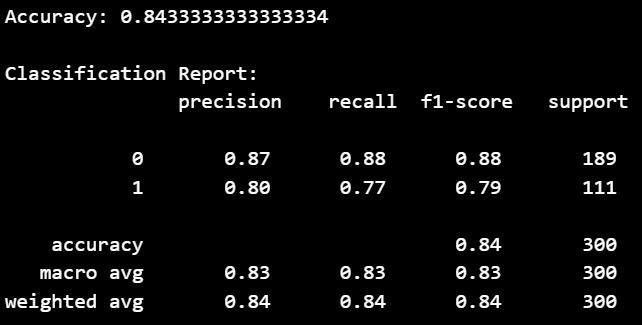 Along with the prediction of diabetes, the work also provides the testing of hypertension which is considered as one of the parameters of diabetes. It also gives the suggestion of the fruits and vegetables to eat to reduce glucose levels and blood pressure. The model shows appreciable accuracy in predicting the outcome. The classificationreportinpredictingdiabetesisshownbelow.