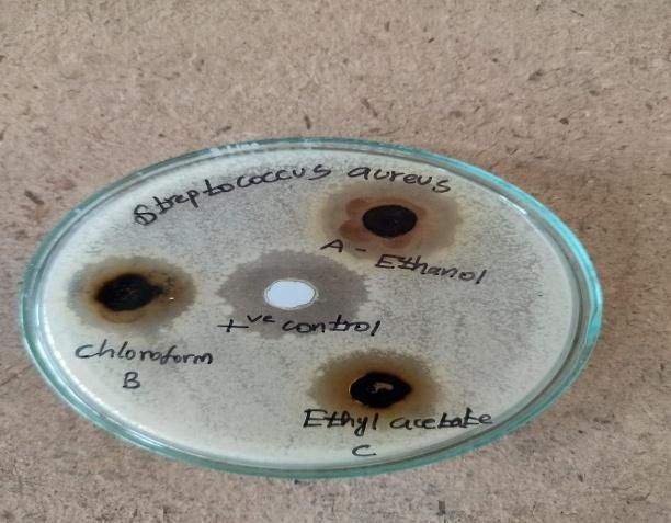 Table 02: Antibacterial activity of ethanol, chloroform and ethyl acetate with 100 µl concentration